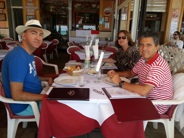 On Friday evening we walked from Julio’s flat to the seafront and decided to have dinner at a lovely looking place called Tres Perlas. It was a great choice and we went back the following night too. We laughed a lot that night as both Eladio and Julio were wearing a blue and white striped top and so was I, the only long sleeved one I had brought and which I wore as it was quite cool on Friday night. You can see what we looked like here.